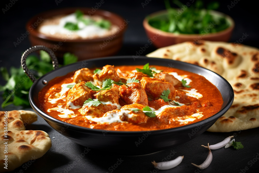 Marinerade, strimlade filébitar av tandoorikyckling, tilredda i en krämig tomatsås med indiskt smöroch cashewnötter.
