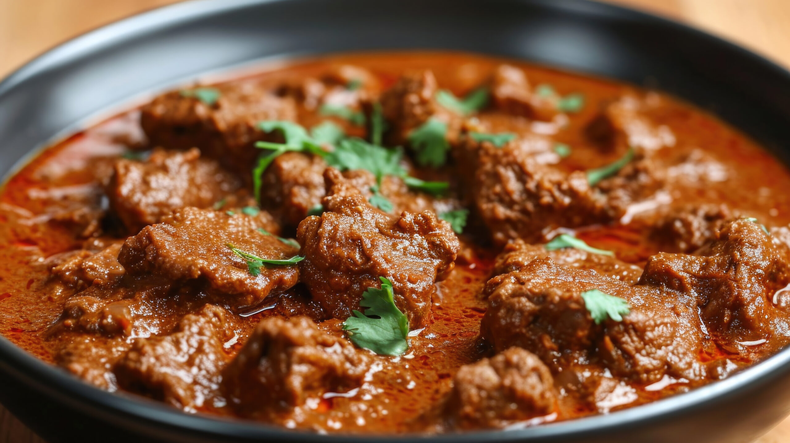 Sydindisk Lamggryta med doft av curryblad och koriander i het kokosmasalasås